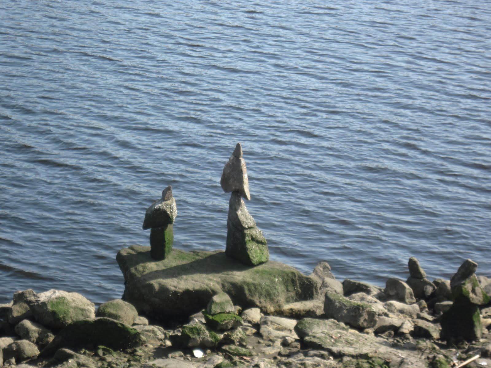 Remembering (or simply making it up in my head and calling it remembering) something about rock stacking being a sacred practice I wanted to know more about it and so I turned to google. I found a few things that alluded to rock stacking as being a spiritual practice but little to no elaboration and so being way too boring to read any further, I gave up. Overall it seems to be a practice that some people do for fun, either as a spiritual practice or simply to challenge themselves. While it isn't my chosen way to have fun I'm glad others are doing what they enjoy most. And because of them I'll continue to enjoy random rock statues on my bike rides.